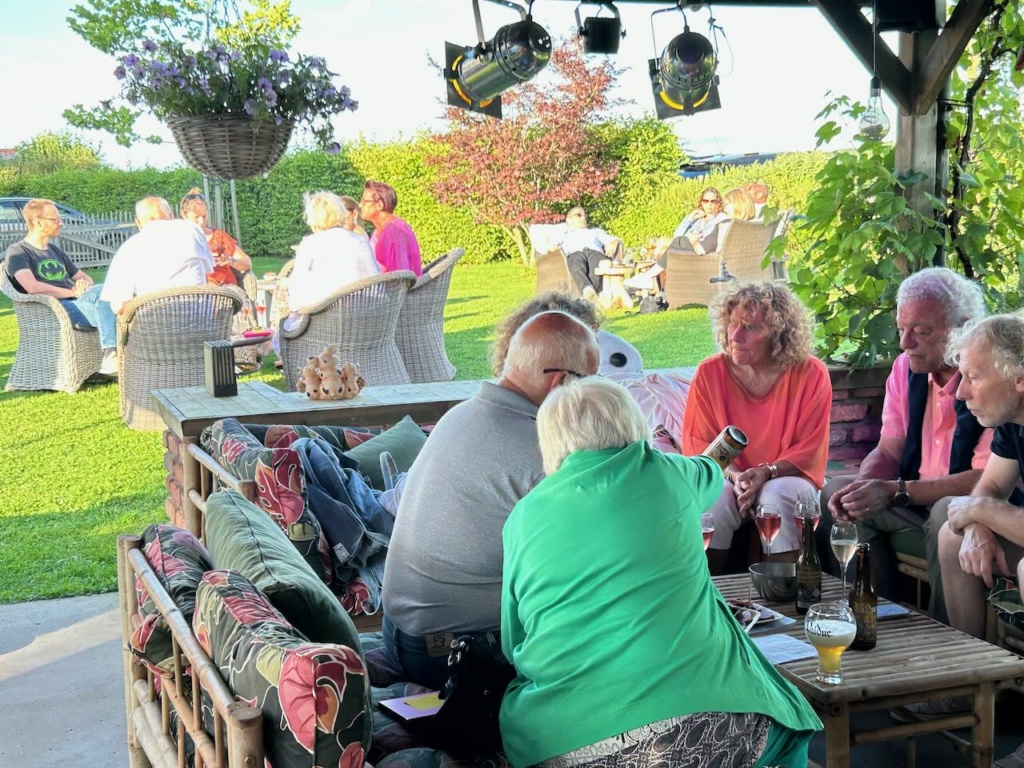 Apéro au jardin autour du bar de la pergola, sous un ciel clément: que du bonheur !